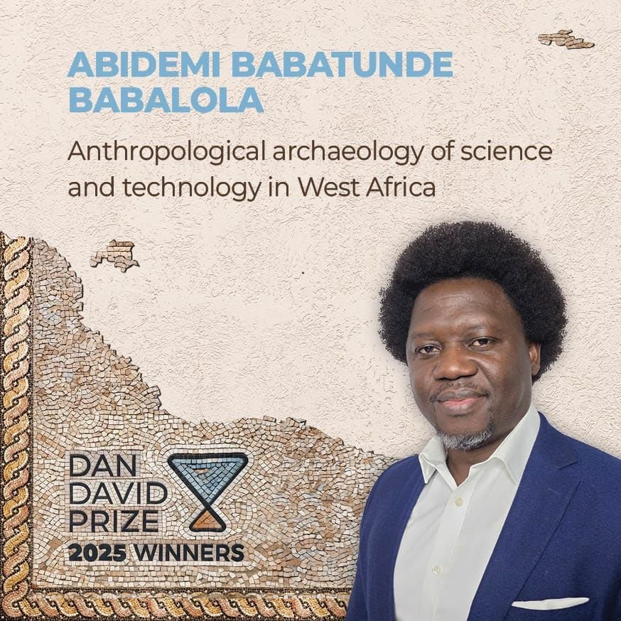 Dr. Abidemi Babatunde Babalola, a distinguished alumnus of the University of Ibadan’s Department of Archaeology and Anthropology, has been awarded the 2025 Dan David Prize, one of the world’s most prestigious history prizes, valued at $300,000. The Dan David Prize, administered by Tel Aviv University, recognizes researchers whose interdisciplinary work transforms our understanding of the human past